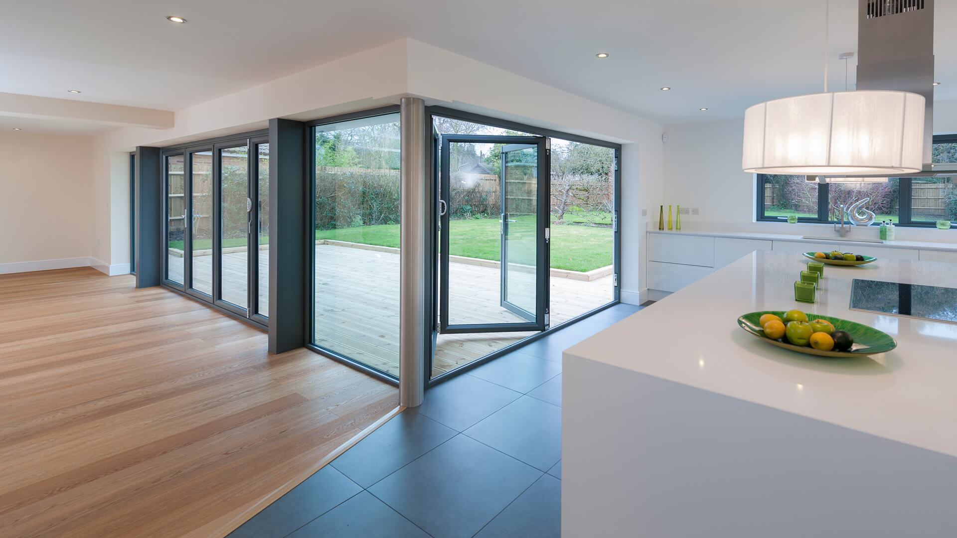 Eclipse bi-folding doors are available in a selection of sizes, colours and designs, making them the ideal choice for large openings where style and strength are imperative.