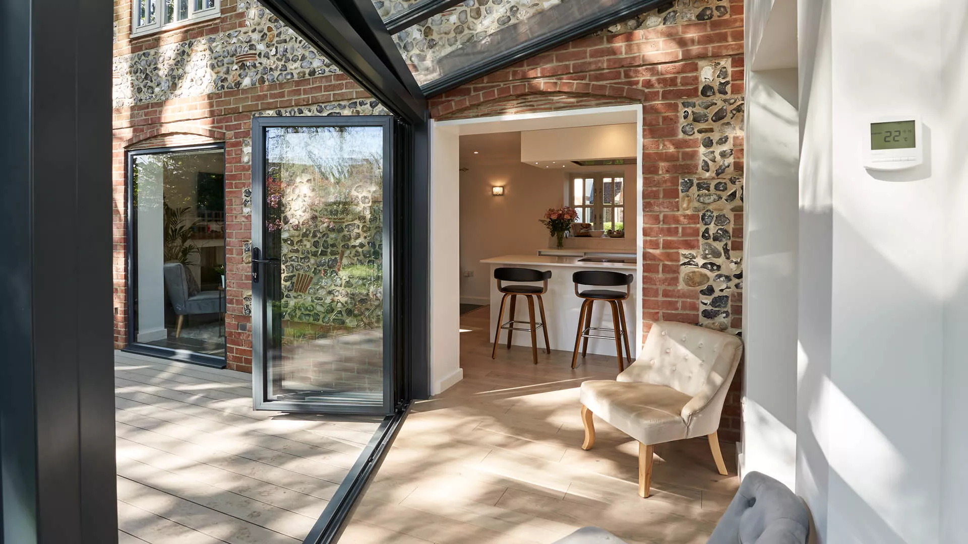 Consider the inclusion of flat skylights in a flat roof extension to be left with an extension that’s modern, sleek and forever inviting.